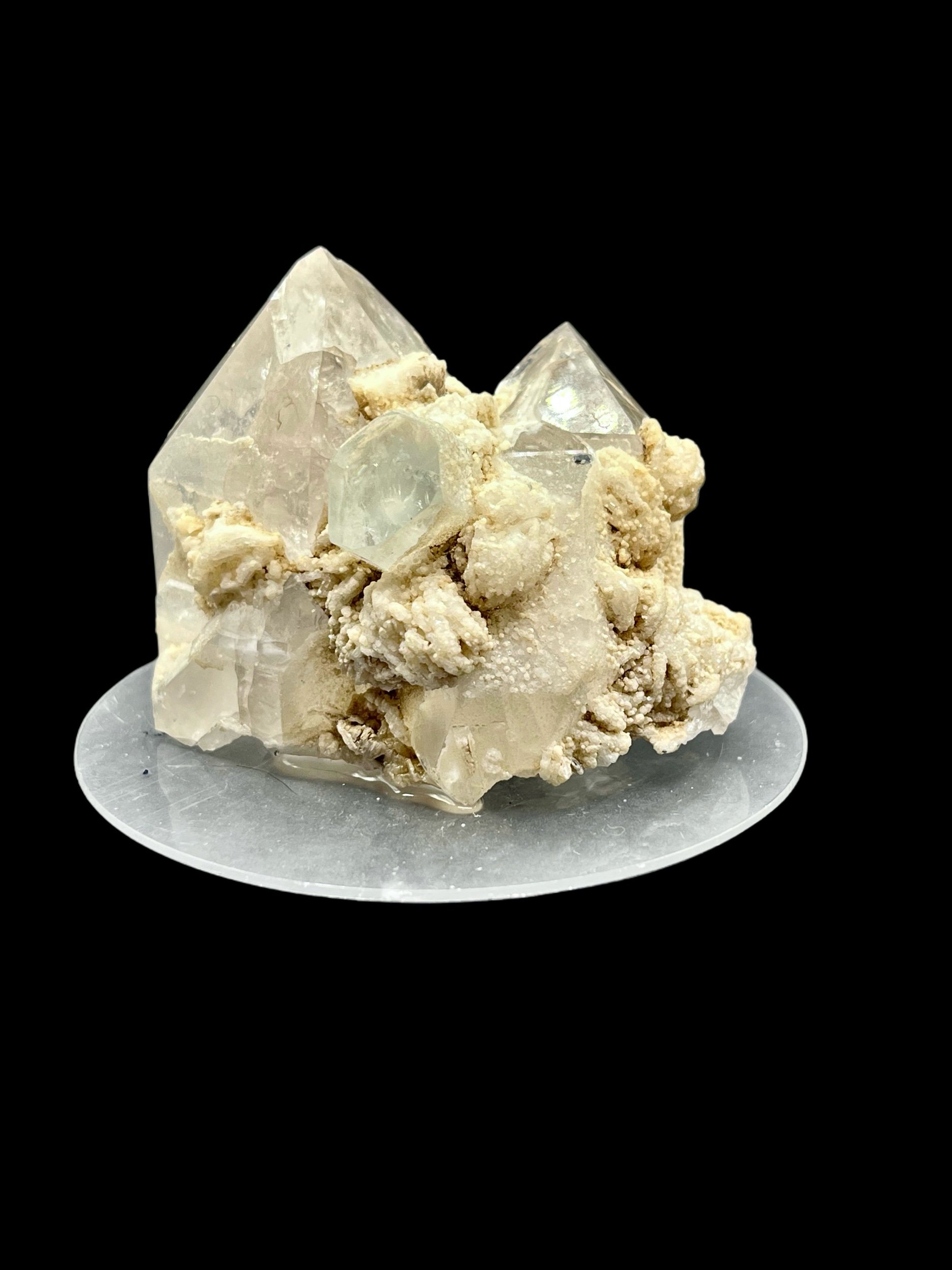 Aquamarine on Quartz with Feldspar Fine Mineral Specimen