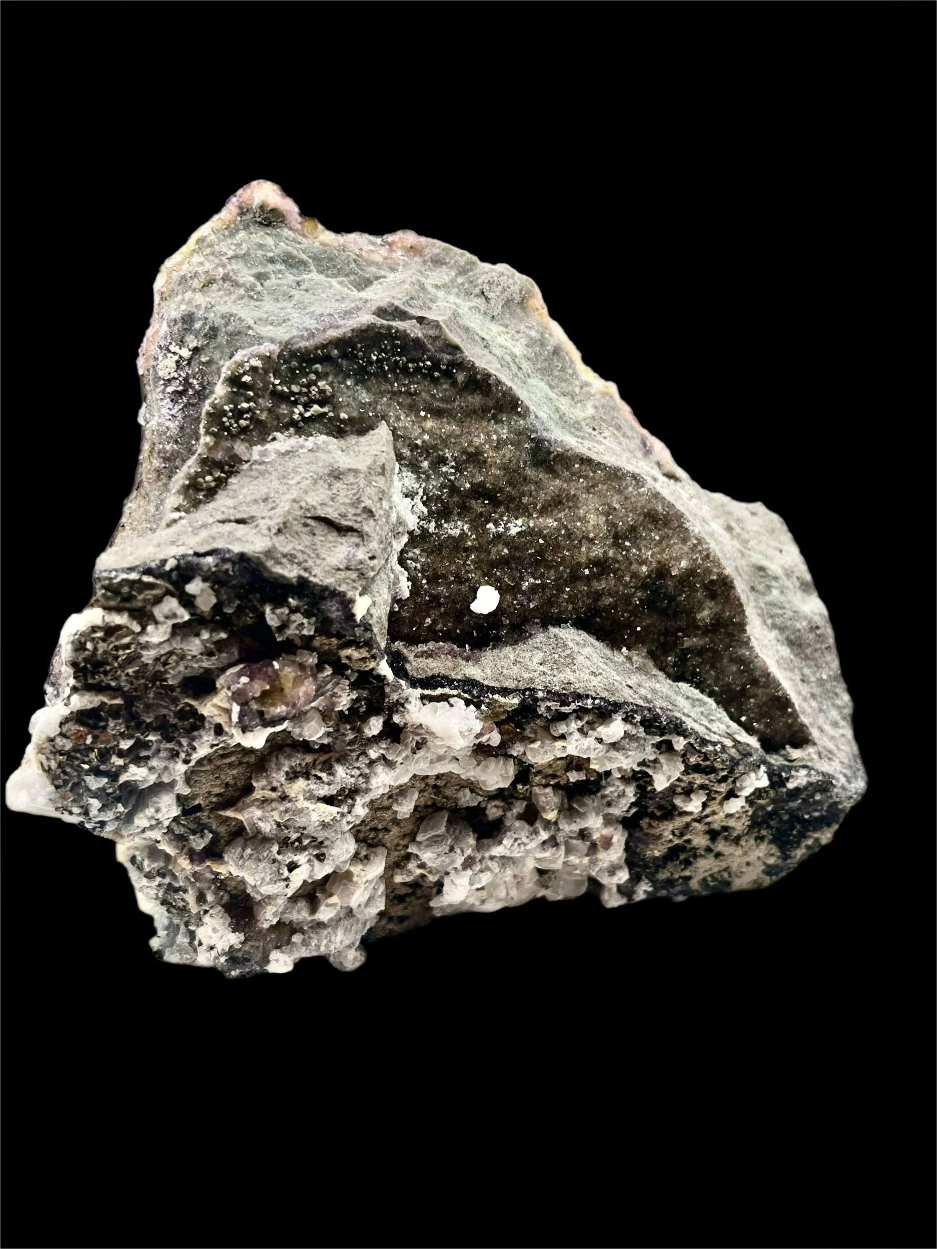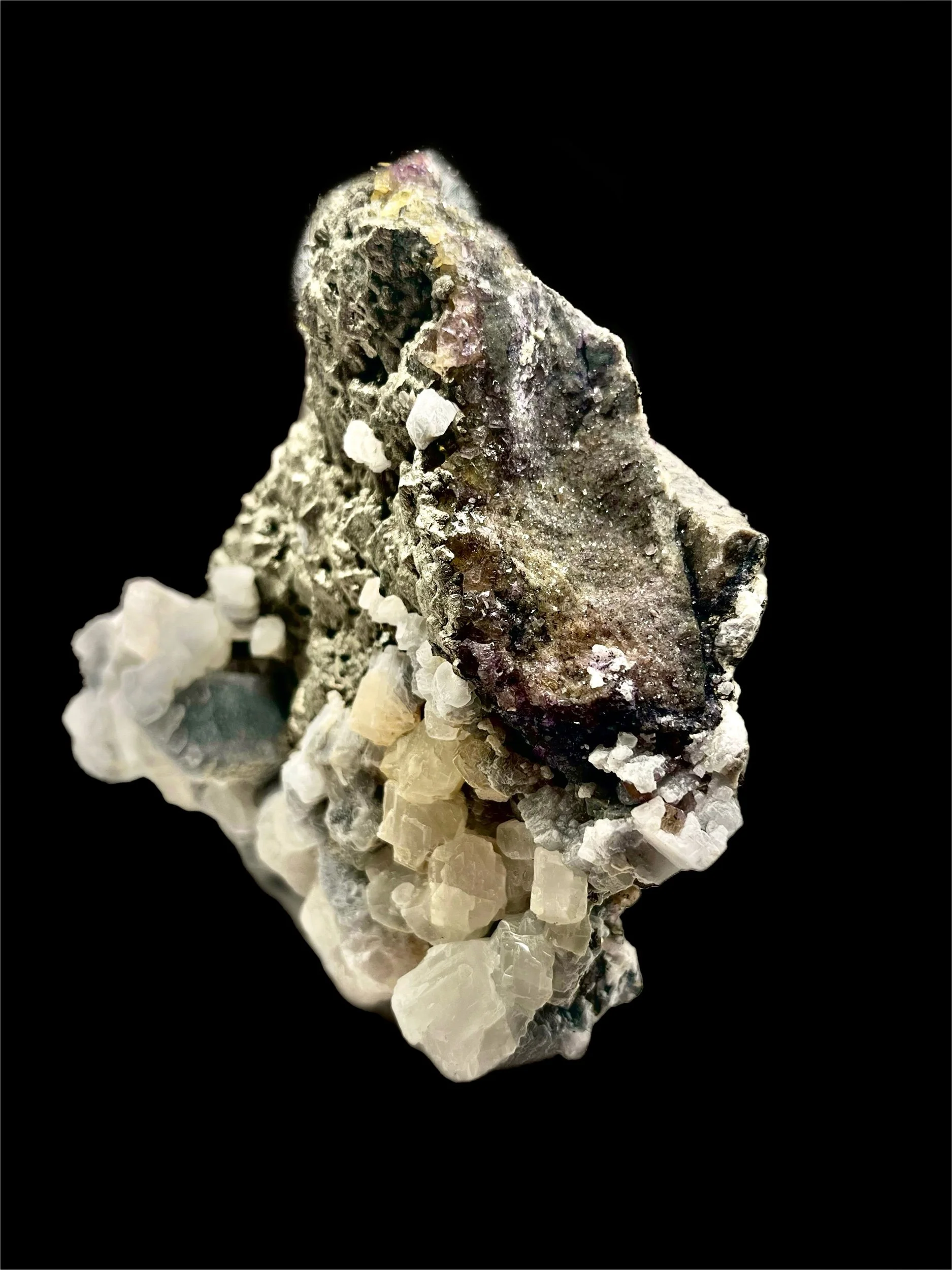 Pyrite with Calcite and Fluorescent Fluorite Mineral Specimen