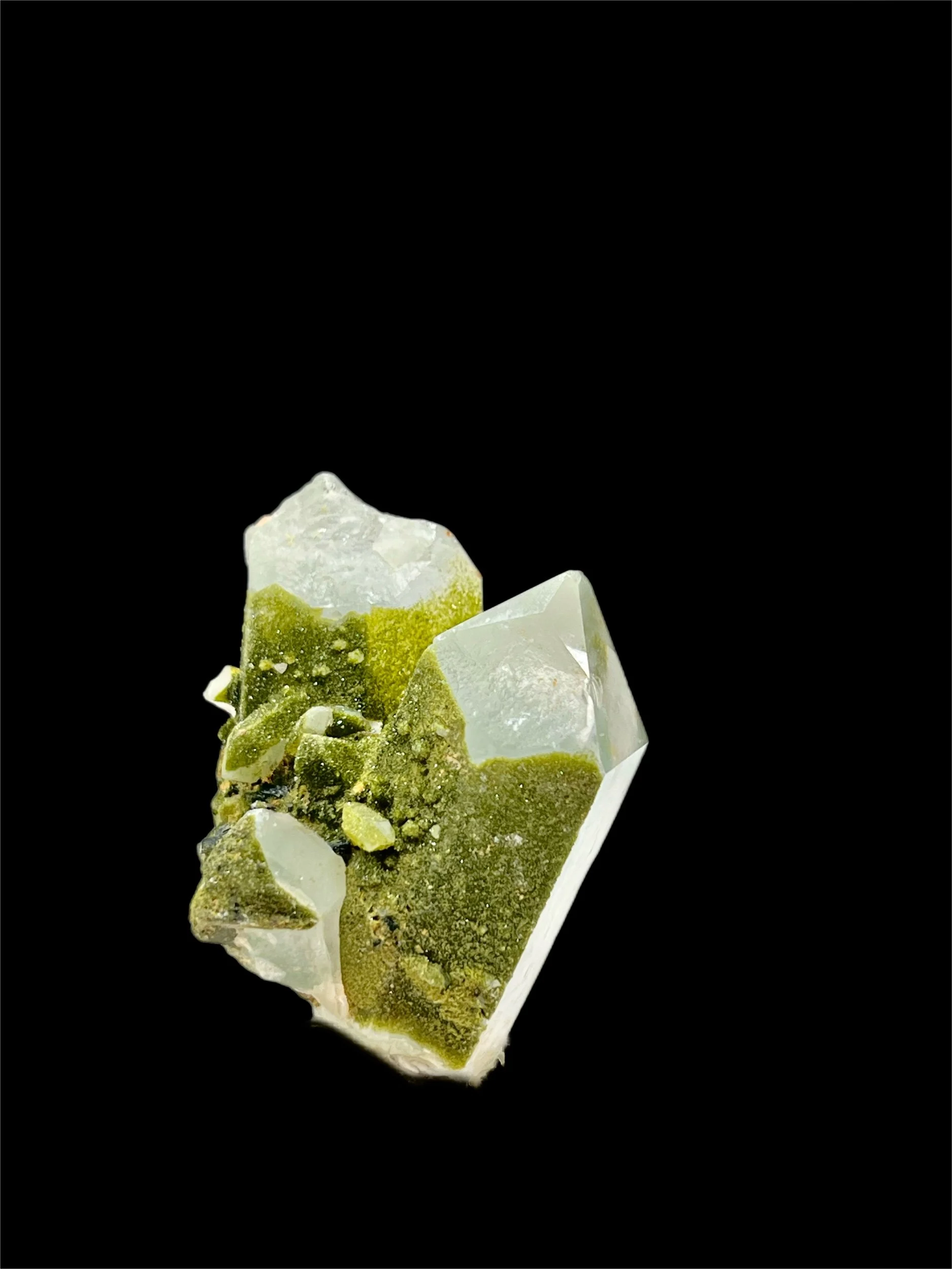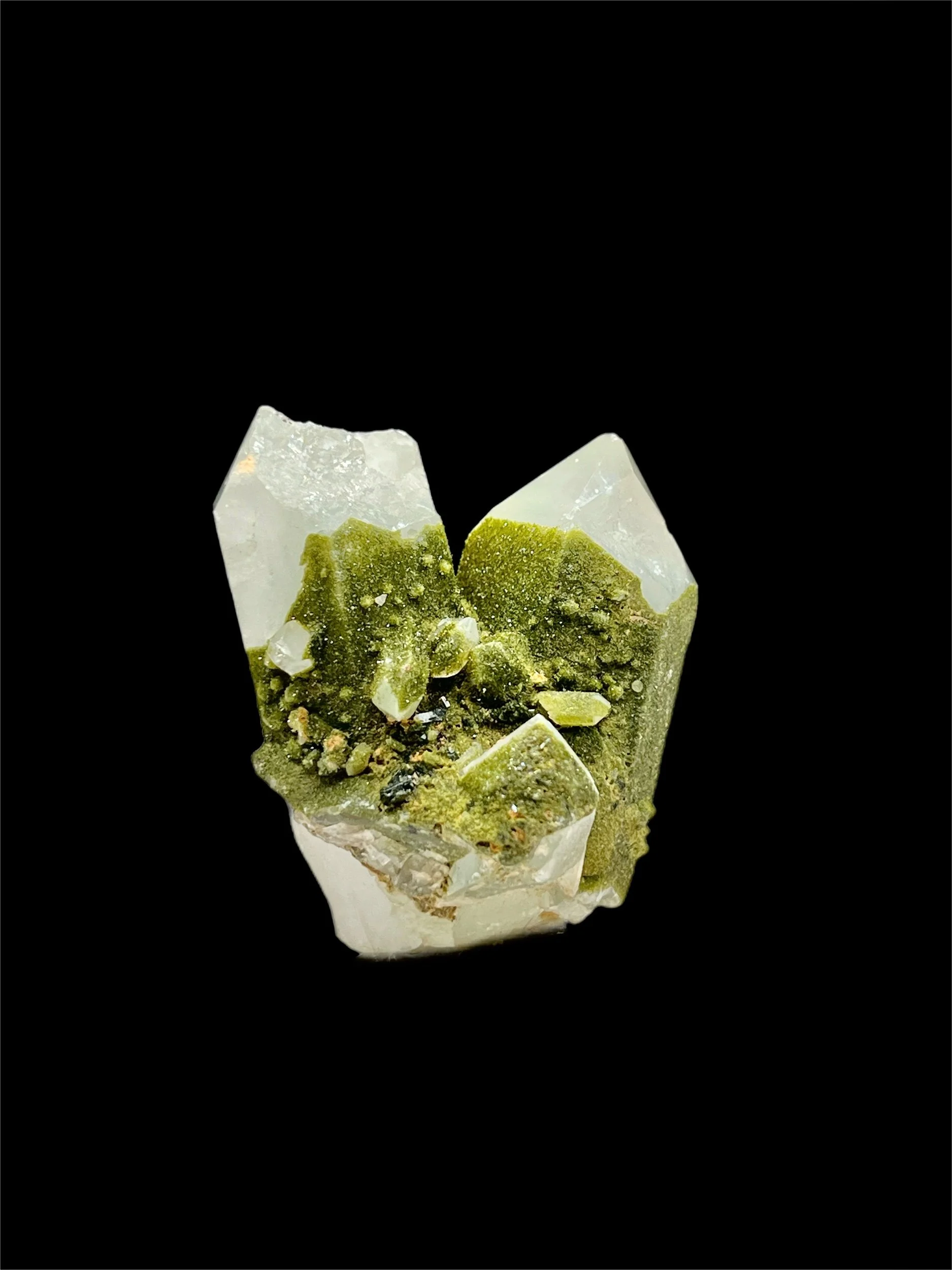 Unique Twin Point Quartz with Chlorite Phantoms and Epidote