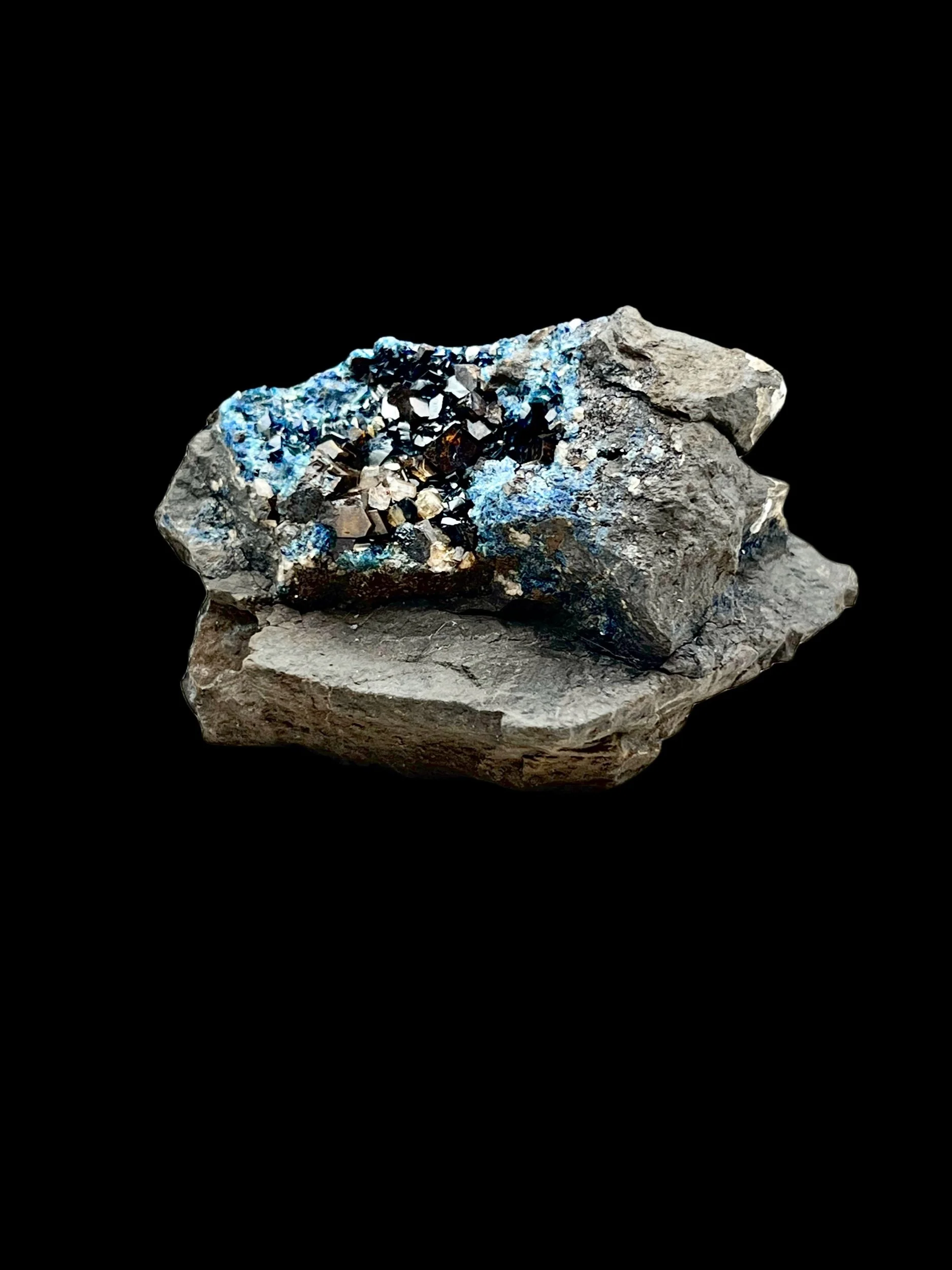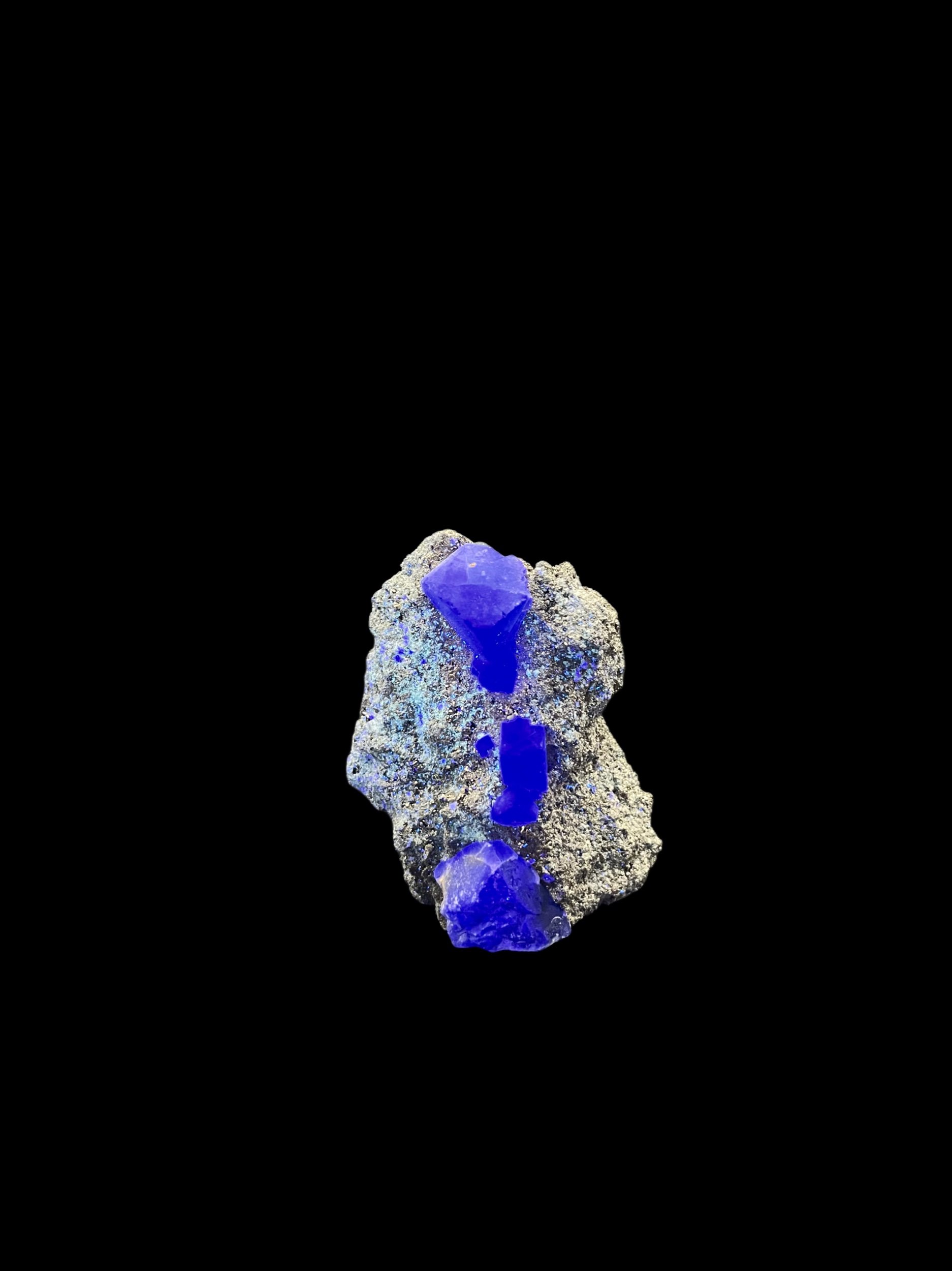 The “stacked” arrangement of cubes gives this piece a unique sculptural quality, while the electric blue UV fluorescence increases its appeal for fluorescent mineral collectors.