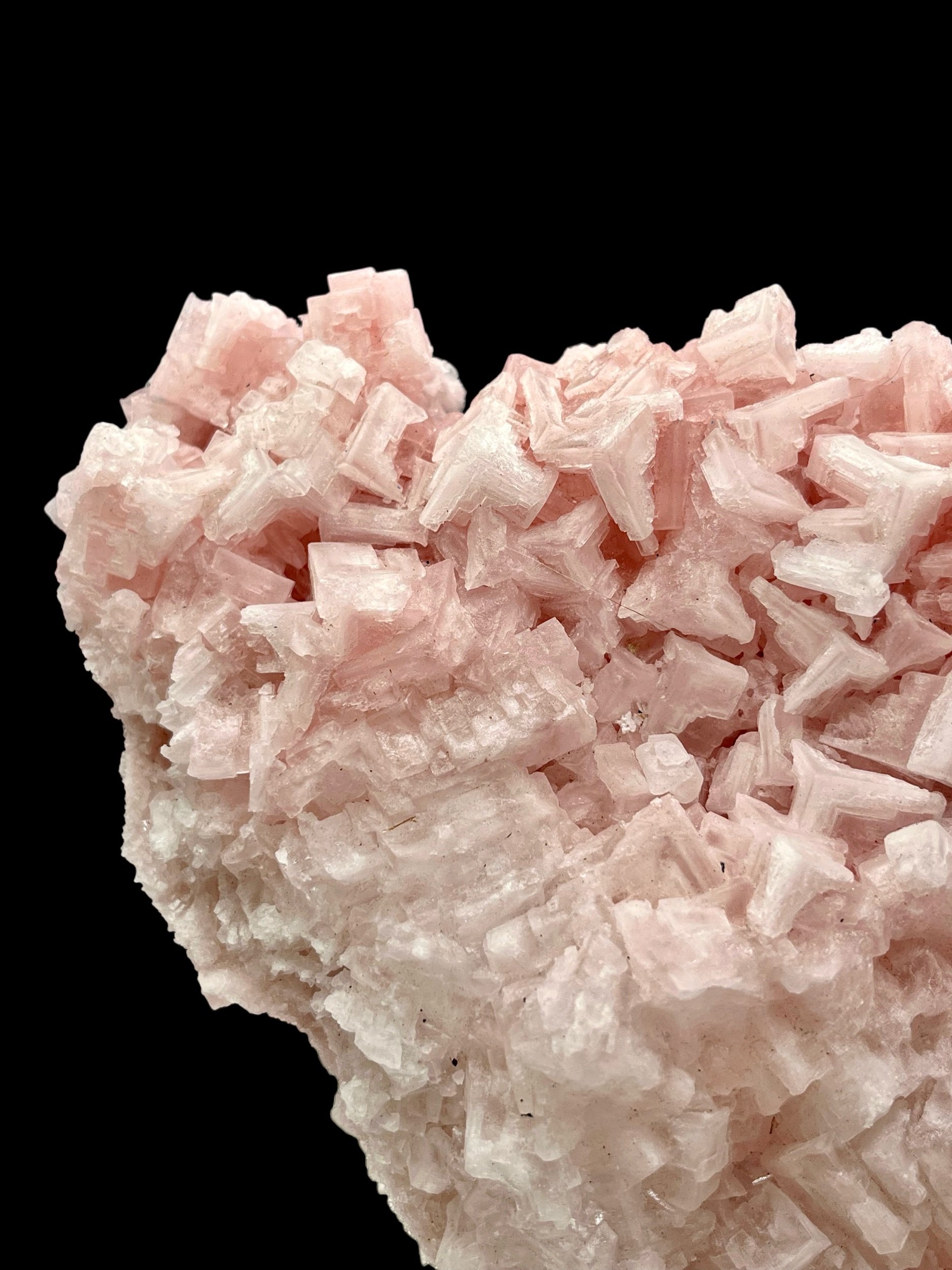 Pink halite from Searles Lake has earned a reputation as one of the great modern collectible evaporite minerals. Its distinctive form and serene color palette create a balance of refinement and uniqueness rarely found in contemporary finds. High-end collectors value these specimens not only for their beauty but also for their limited availability and the skill required to extract them intact.