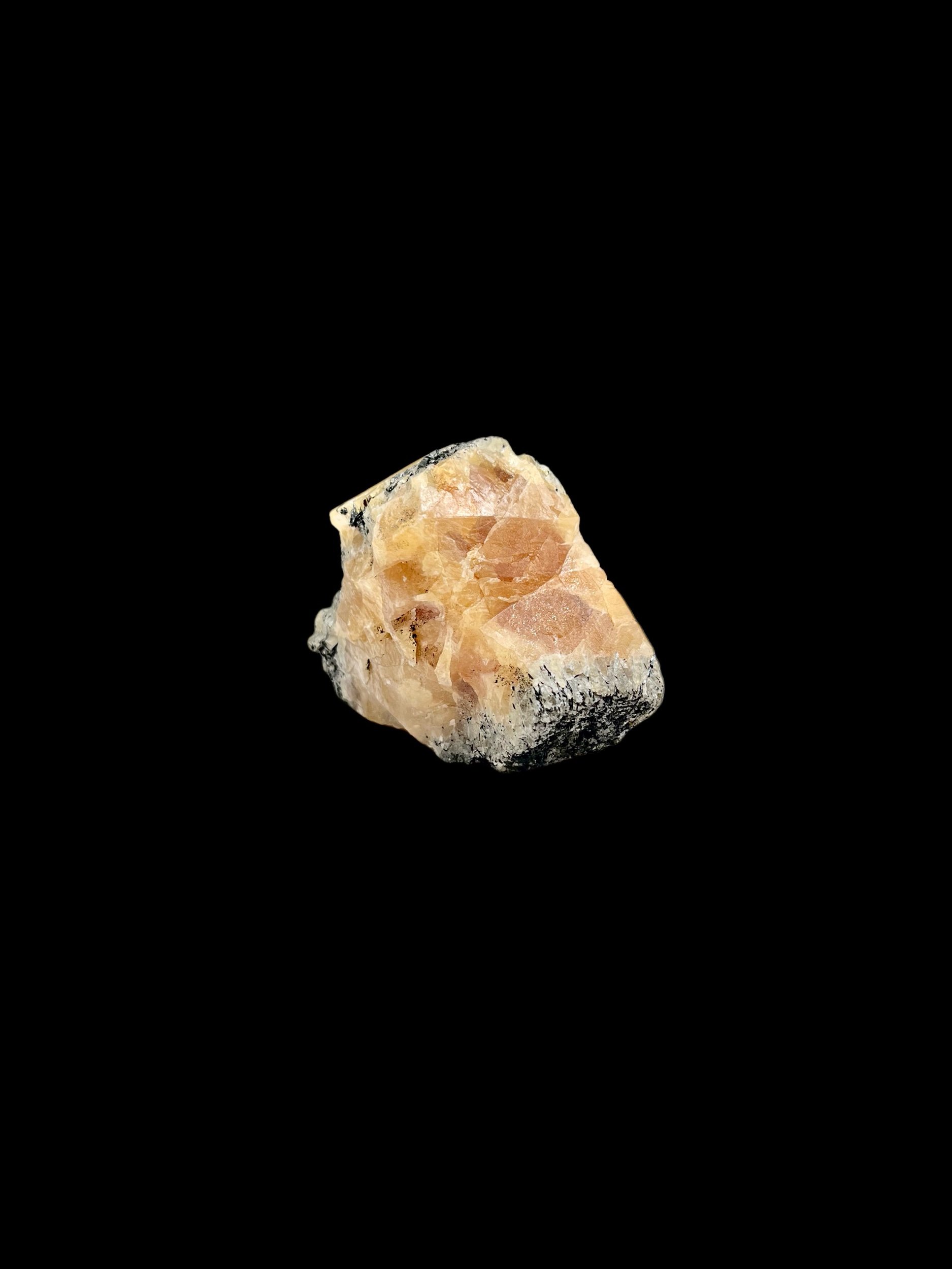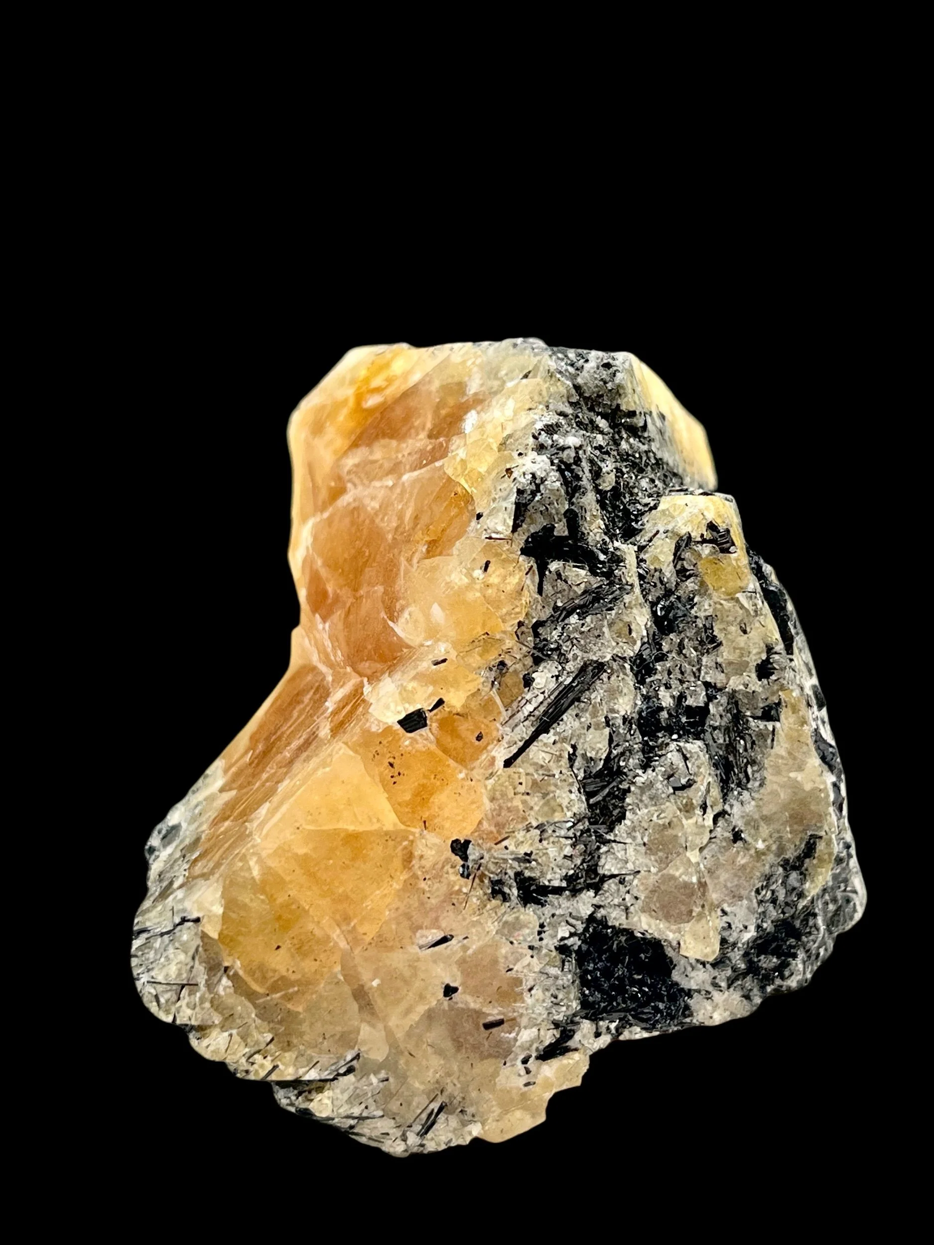 Naturally occurring scheelite with black tourmaline (schorl)