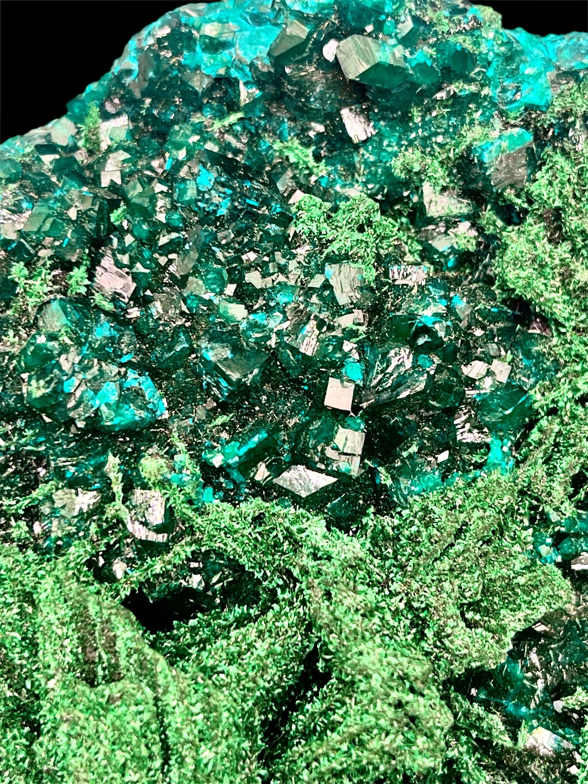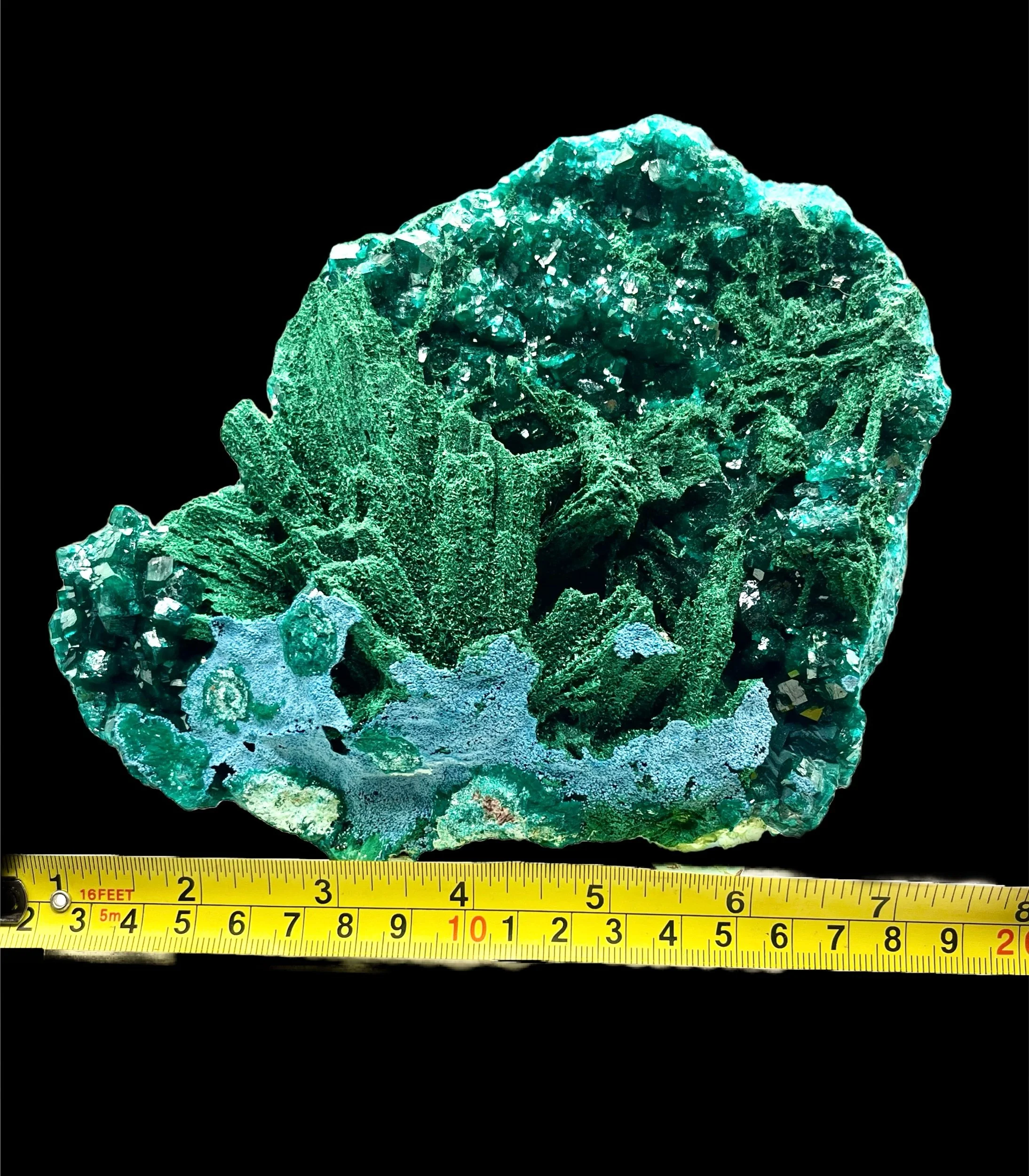 Exquisite Dioptase on Malachite with Chrysocolla — Erongo Mountains, Namibia