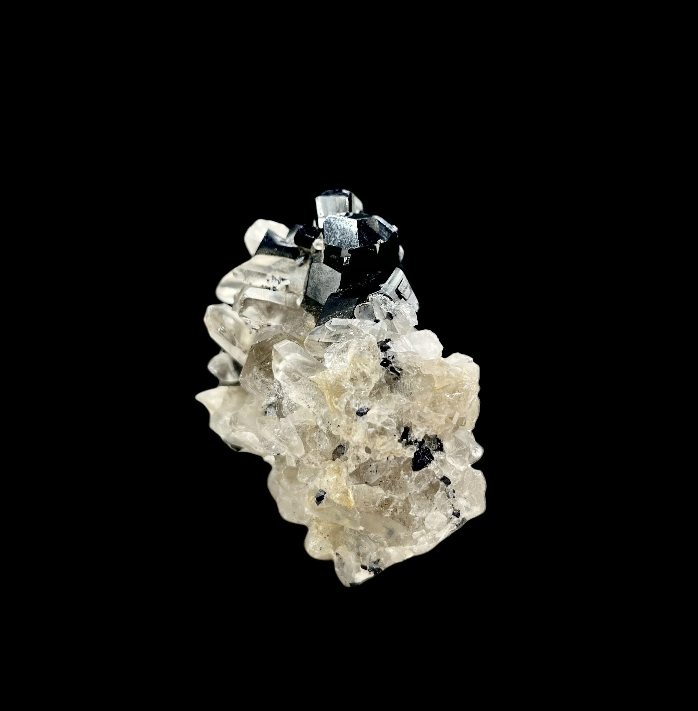 This exceptional specimen pairs deep black tourmaline crystals with luminous quartz. It’s a natural, unaltered specimen that embodies the elegance of Earth-formed crystal associations—ideal for collectors seeking a refined and visually compelling piece.