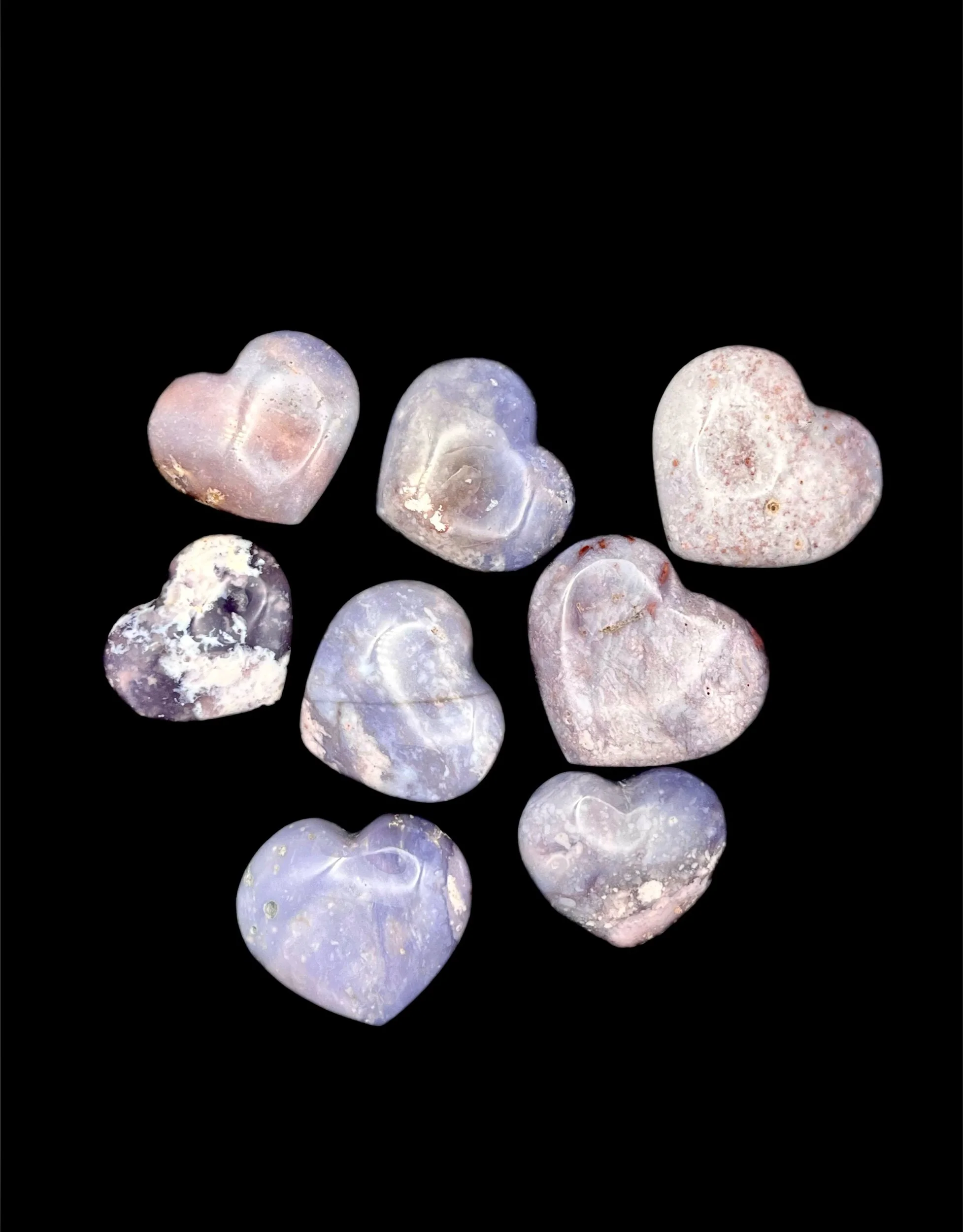 Soft, luminous, and quietly captivating, these hand-cut purple chalcedony hearts carry a natural beauty and sense of wonder. Each piece is carefully shaped and polished to highlight the subtle translucency and gentle color variation that makes chalcedony so desirable among collectors.