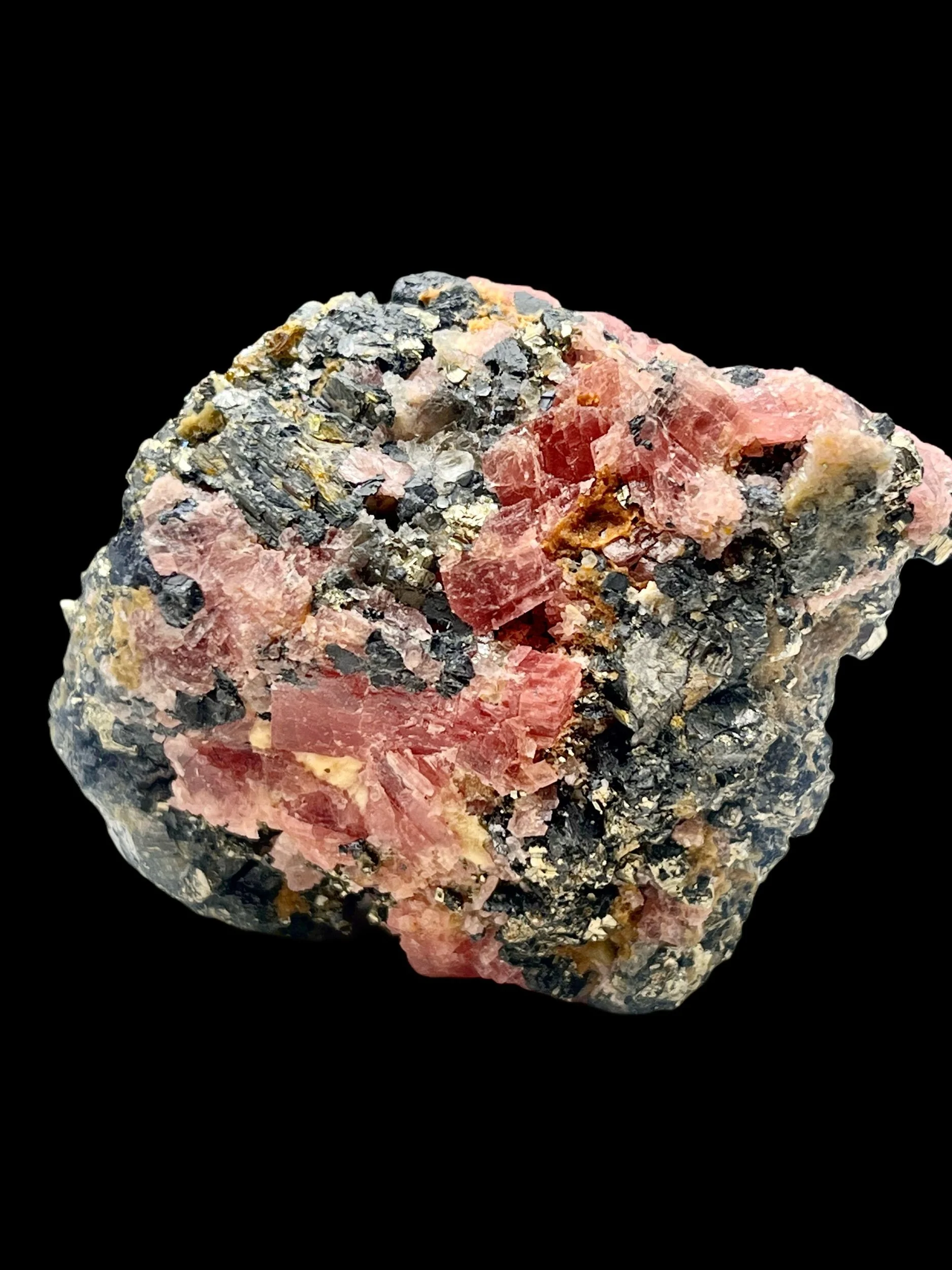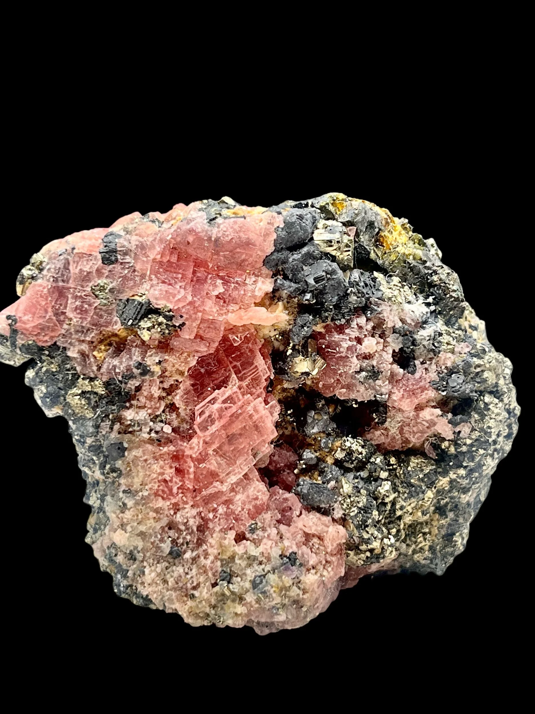 Rhodochrosite with Pyrite and UV Reactive Fluorite Mineral Specimen
