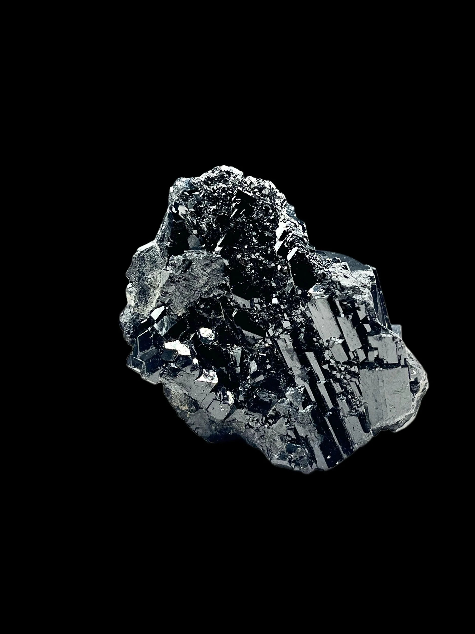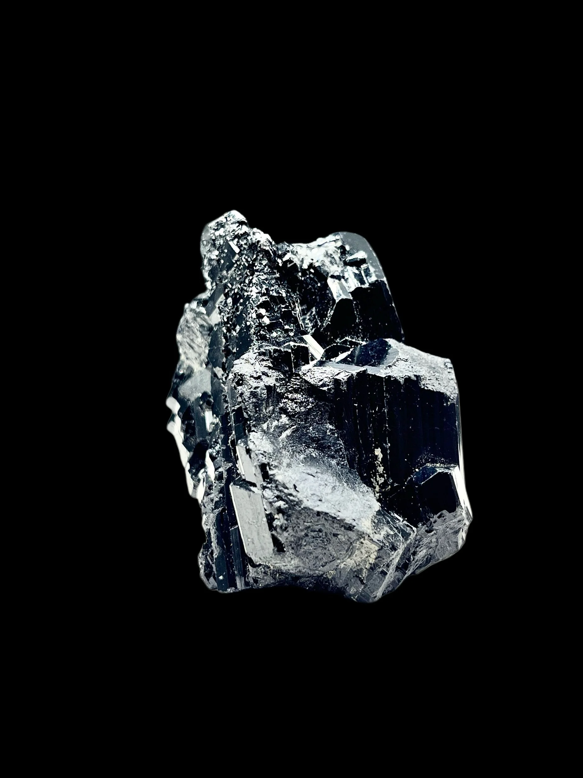 This striking black tourmaline specimen showcases the mineral’s iconic geometric brilliance, with sharply defined terminations and a rich, velvety luster that absorbs and reflects light with refined intensity. Its presence is bold yet sophisticated—an architectural statement within the mineral world.